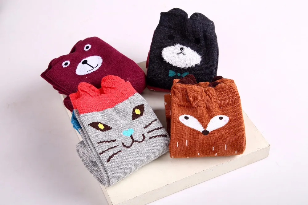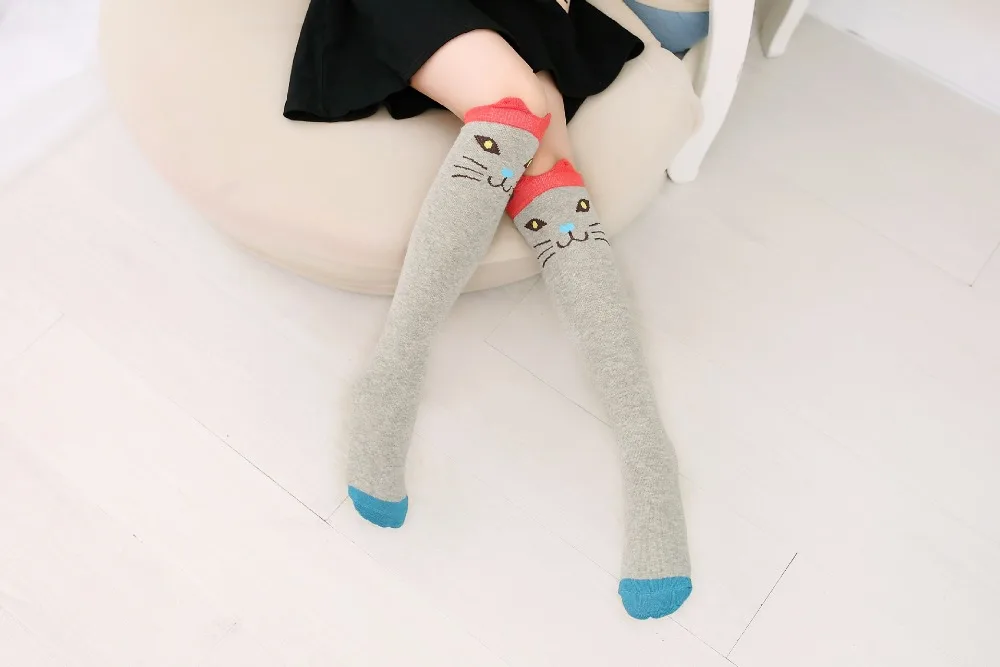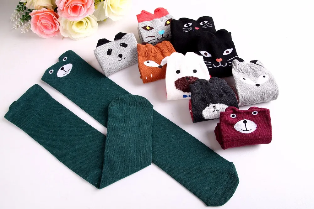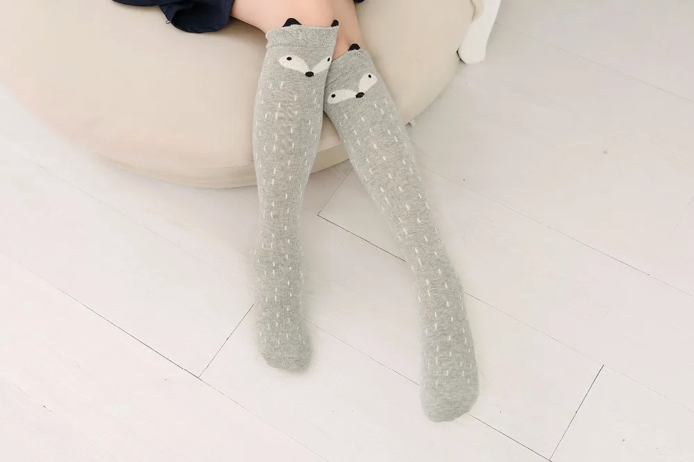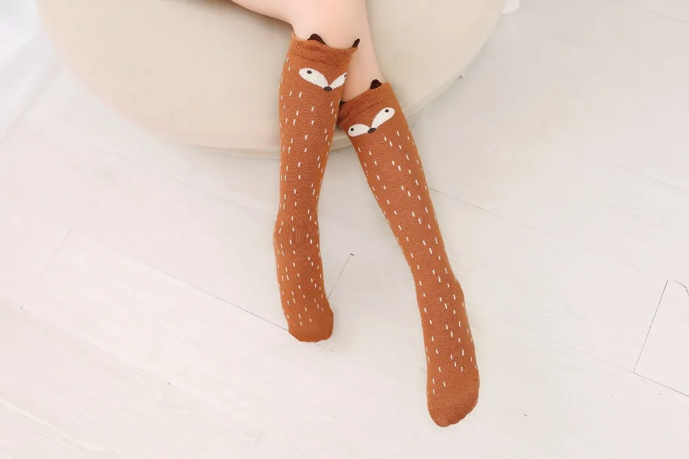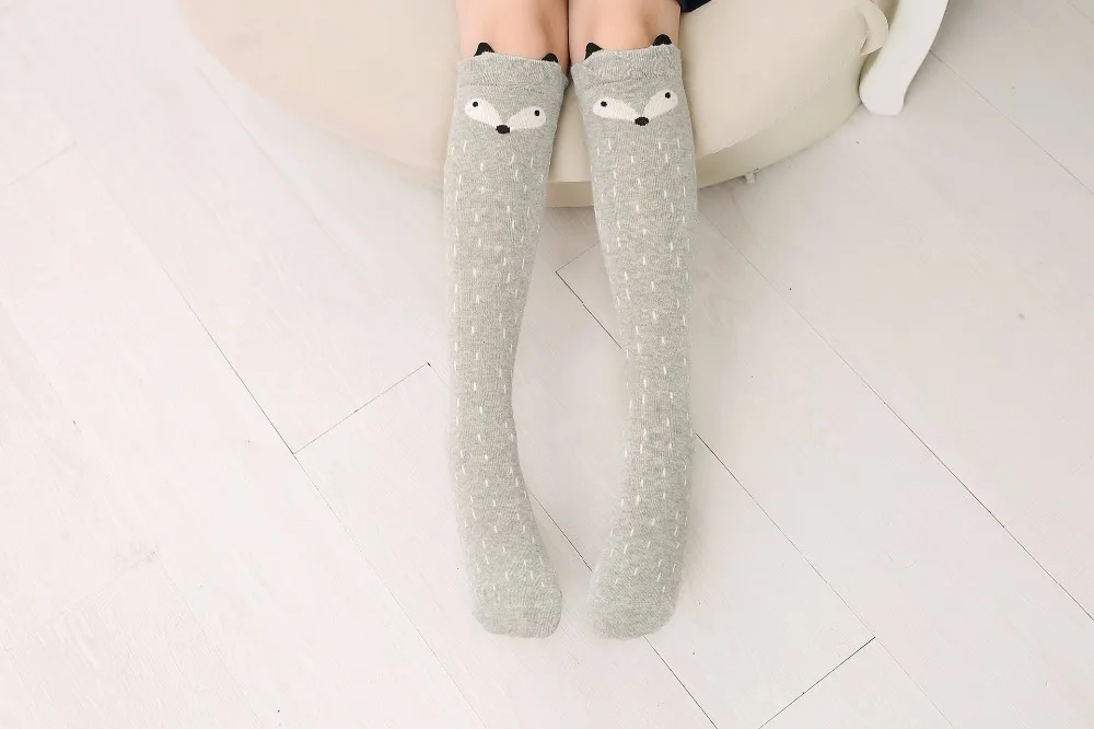 Girl's Cotton Long Socks with Animal Print