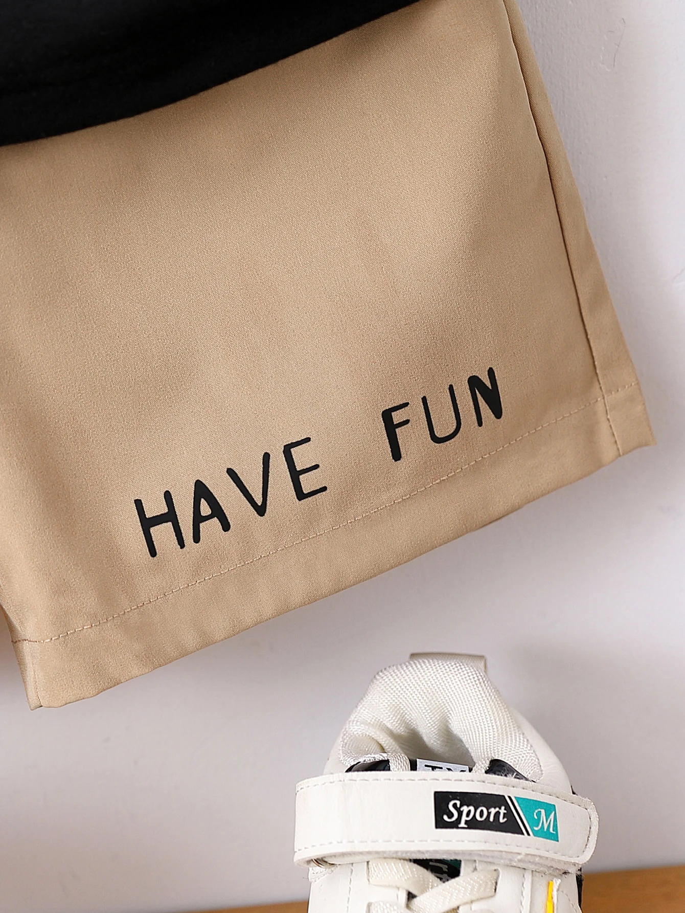 Summer Boy Cartoon Bear Children's 2-piece Set Round Neck T-shirt+Shorts Cool and Breathable